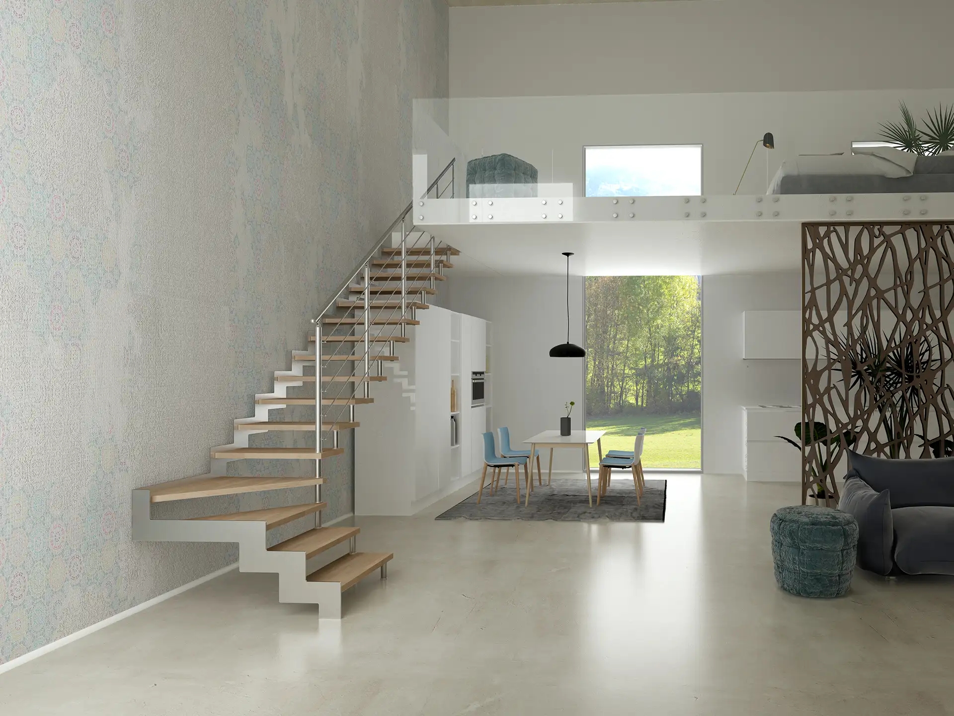 • Design aperto: perfette per ambienti luminosi, le scale a giorno lasciano passare la luce e alleggeriscono lo spazio.